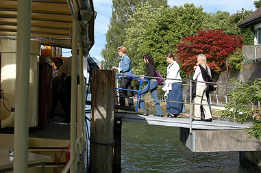 Ein-/Ausstieg an allen offiziellen Schiffanlegestellen zwischen Basel und Rheinfelden (dort wo auch das Kursschiff anlegt).